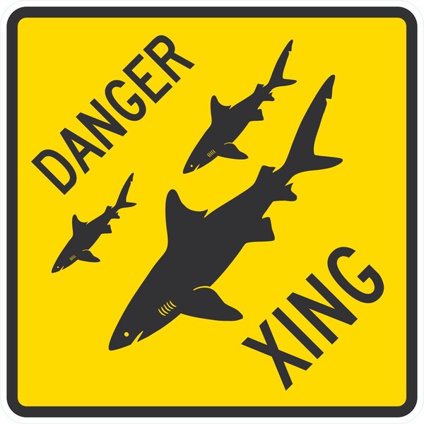 Danger Xing (W/Shark Graphic), 24x24, Engineer Grade, Yellow