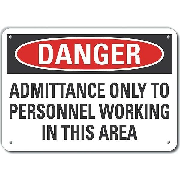 Plastic Authorized Personnel Danger Sign, Vertical Rectangle, Number of Printed Sides 1, English, Sign Format Traditional OSHA, Sign Legend Admittance Only To Personnel Working In This Area, Sign Legend Background Color White, Sign Legend Style Text