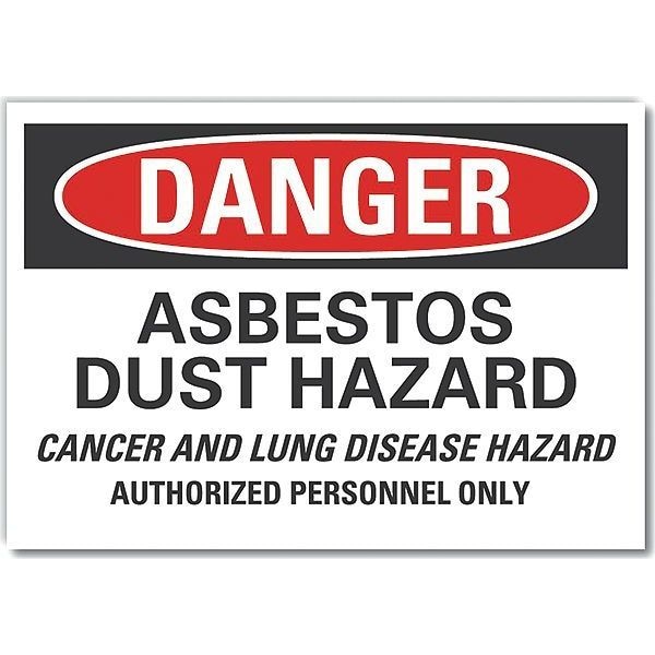 Decal, Danger Asbestos Dust, 5 x 3.5", 3 1/2 in Height, 5 in Width, Polyester, Horizontal Rectangle