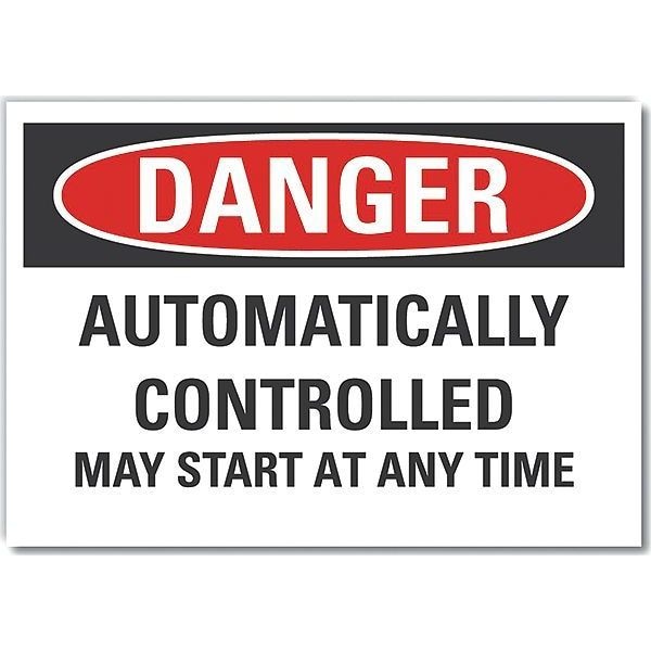 Danger Sign, Horizontal Rectangle, Number of Printed Sides 1, English, Sign Format Traditional OSHA, Sign Legend Automatically Controlled May Start At Any Time, Sign Legend Background Color White, Sign Legend Style Text