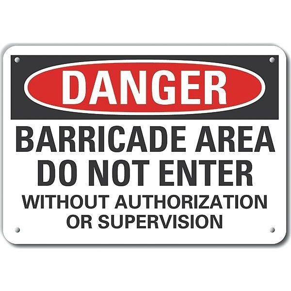 Danger Sign, Vertical Rectangle, Number of Printed Sides 1, English, Sign Format Traditional OSHA, Sign Legend Barricade Area Do Not Enter Without Authorization Or Supervision, Sign Legend Background Color White, Sign Legend Style Text