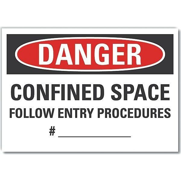 Danger Sign, Horizontal Rectangle, Number of Printed Sides 1, English, Sign Format Traditional OSHA, Sign Legend Confined Space Follow Entry Procedures #______, Sign Legend Background Color White, Sign Legend Style Text