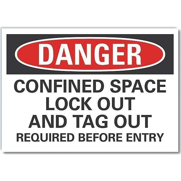 Danger Sign, Horizontal Rectangle, Number of Printed Sides 1, English, Sign Format Traditional OSHA, Sign Legend Confined Space Lock Out And Tag Out Required Before Entry, Sign Legend Background Color White, Sign Legend Style Text