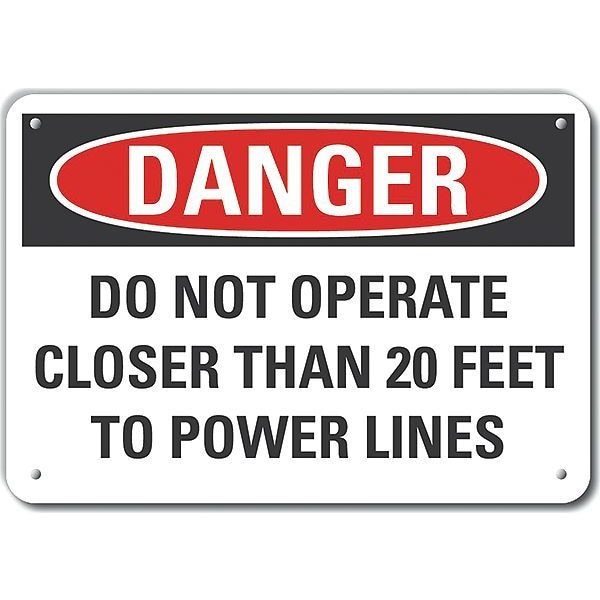 Danger Sign, Horizontal Rectangle, Number of Printed Sides 1, English, Sign Format Traditional OSHA, Sign Legend Do Not Operate Closer Than 20 Feet To Power Lines, Sign Legend Background Color White, Sign Legend Style Text