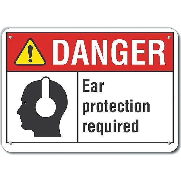 Plastic Hearing Danger Sign, Horizontal Rectangle, Number of Printed Sides 1, English, Sign Format ANSI/OSHA Format, Sign Legend Ear Protection Required, Sign Legend Background Color White, Sign Legend Style Symbol and Text