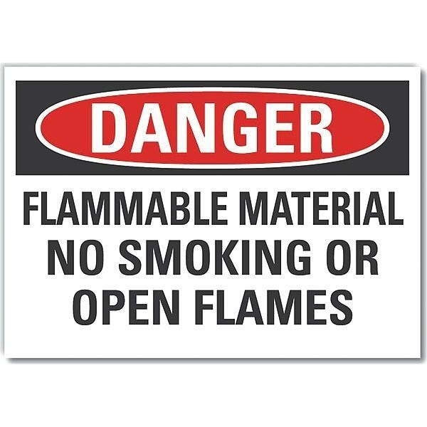 Danger Sign, Horizontal Rectangle, Number of Printed Sides 1, English, Sign Format Traditional OSHA, Sign Legend Flammable Material No Smoking Or Open Flames, Sign Legend Background Color White, Sign Legend Style Text