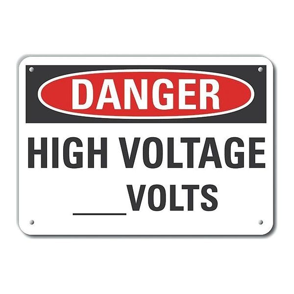 Plastic High Voltage Danger Sign, Vertical Rectangle, Number of Printed Sides 1, English, Sign Format Traditional OSHA, Sign Legend High Voltage ___Volts, Sign Legend Background Color White, Sign Legend Style Text