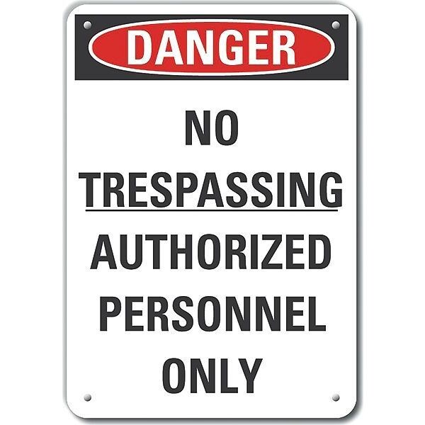 Danger Sign, Horizontal Rectangle, Number of Printed Sides 1, English, Sign Format Traditional OSHA, Sign Legend No Trespassing Authorized Personnel Only, Sign Legend Background Color White, Sign Legend Style Text