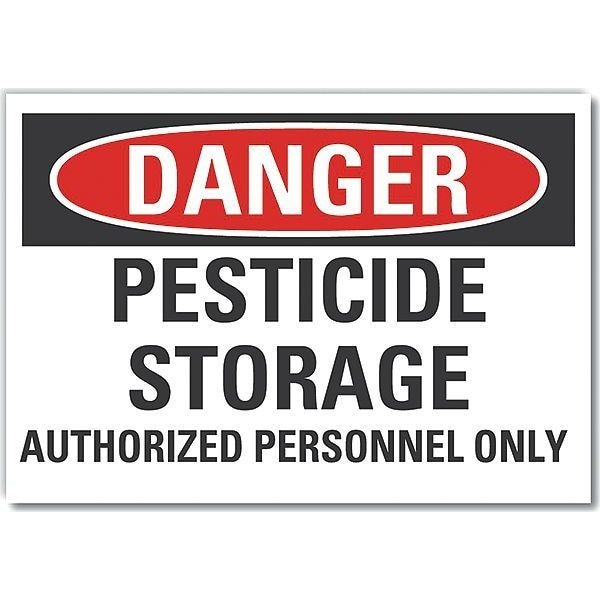 Danger Sign, Vertical Rectangle, Number of Printed Sides 1, English, Sign Format Traditional OSHA, Sign Legend Pesticide Storage Authorized Personnel Only, Sign Legend Background Color White, Sign Legend Style Text