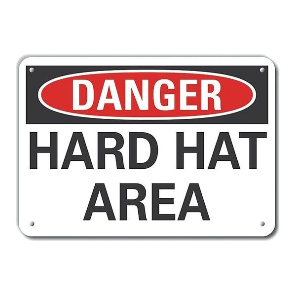 Plastic Hard Hat Danger Sign, Vertical Rectangle, Number of Printed Sides 1, English, Sign Format Traditional OSHA, Sign Legend Hard Hat Area, Sign Legend Background Color White, Sign Legend Style Text