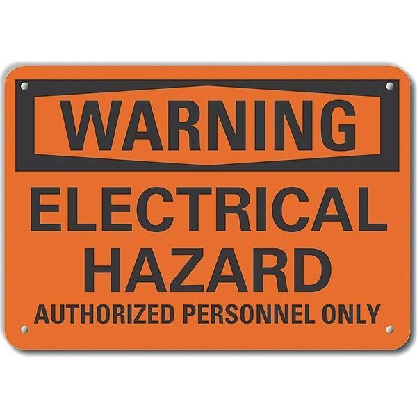 Plastic Electrical Hazard Warning Sign, Horizontal Rectangle, Number of Printed Sides 1, English, Sign Format Traditional OSHA, Sign Legend Electrical Hazard Authorized Personnel Only, Sign Legend Background Color Orange, Sign Legend Style Text
