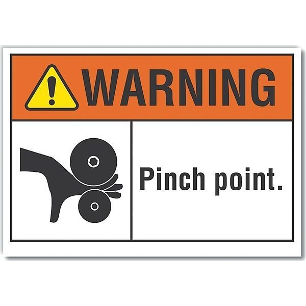 Decal, Warning Pinch Point, 10 x 7", 7 in Height, 10 in Width, Polyester, Vertical Rectangle, English