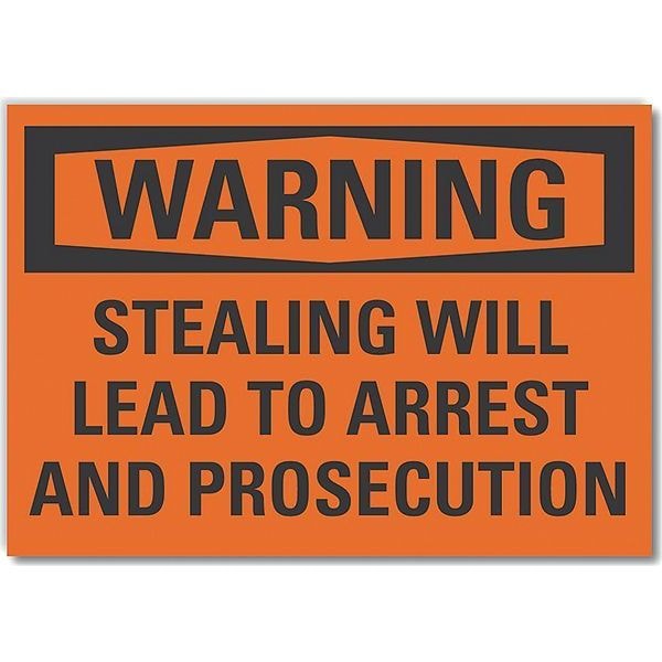 Danger Sign, Horizontal Rectangle, Number of Printed Sides 1, English, Sign Format Traditional OSHA, Sign Legend Stealing Will Lead To Arrest And Prosecution, Sign Legend Style Text