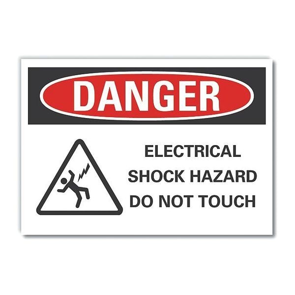Danger Sign, Horizontal Rectangle, Number of Printed Sides 1, English, Sign Format ANSI/OSHA Format, Sign Legend Electrical Shock Hazard Do Not Touch, Sign Legend Background Color White, Sign Legend Style Symbol and Text