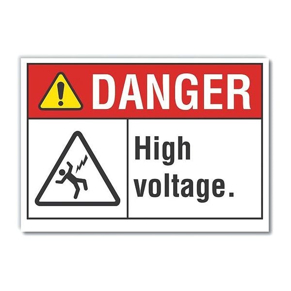 Danger Sign, Vertical Rectangle, Number of Printed Sides 1, English, Sign Format ANSI/OSHA Format, Sign Legend High Voltage., Sign Legend Background Color White, Sign Legend Style Symbol and Text