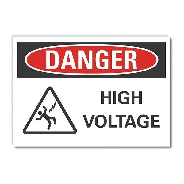 Danger Sign, Horizontal Rectangle, Number of Printed Sides 1, English, Sign Format ANSI/OSHA Format, Sign Legend High Voltage, Sign Legend Background Color White, Sign Legend Style Symbol and Text
