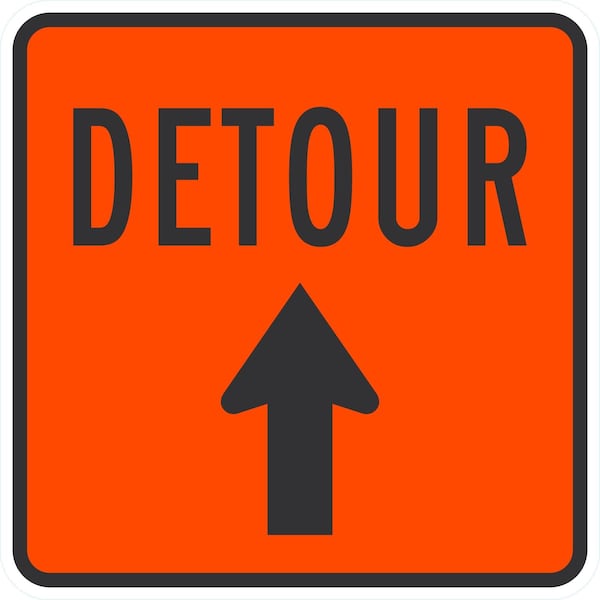 Detour (Up Arrow), 24x24, Engineer Grade, Orange