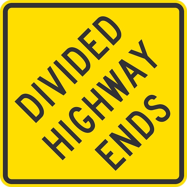 Divided Highway Ends, 36x36, Engineer Grade, Yellow