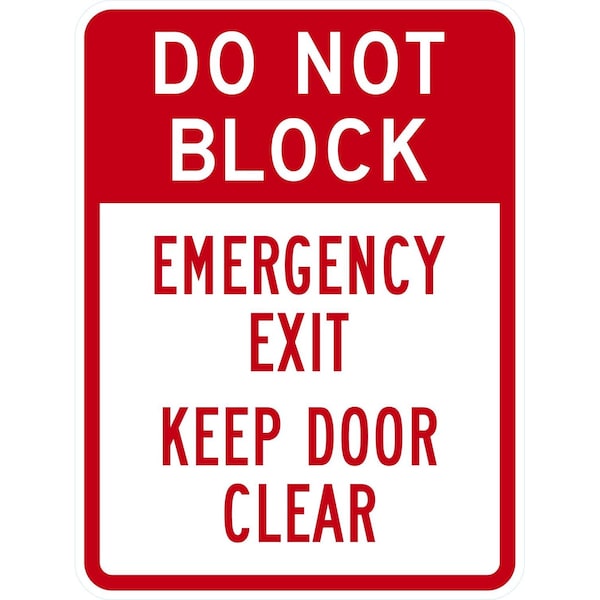 Do Not Block Emergency Exit Keep Door Clear, 18x24, High Intensity Prismatic, White
