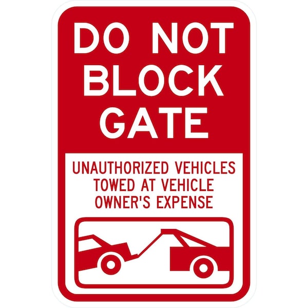 Do Not Block Gate Unauthorized Vehicles Towed At, 12x18, Non-Reflective, White