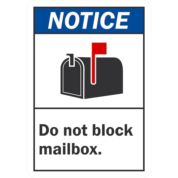 Do Not Block Mailbox (With Graphic), 7x10, Non-Reflective, White