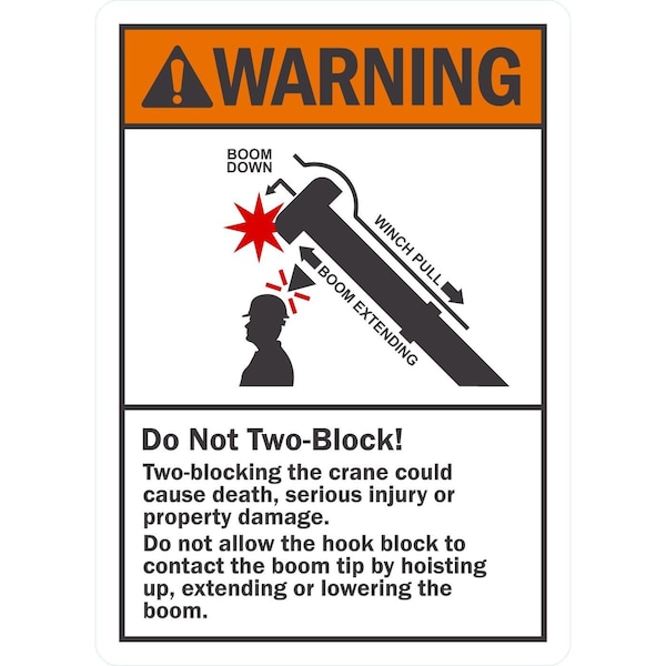 Do Not Two-Block Could Cause Injury, 5x7, Non-Reflective, White