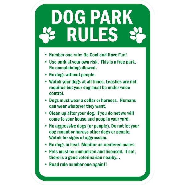 Dog Park Rules Number One Rule: Be Cool and Have Fun e, 12x18, Engineer Grade, White
