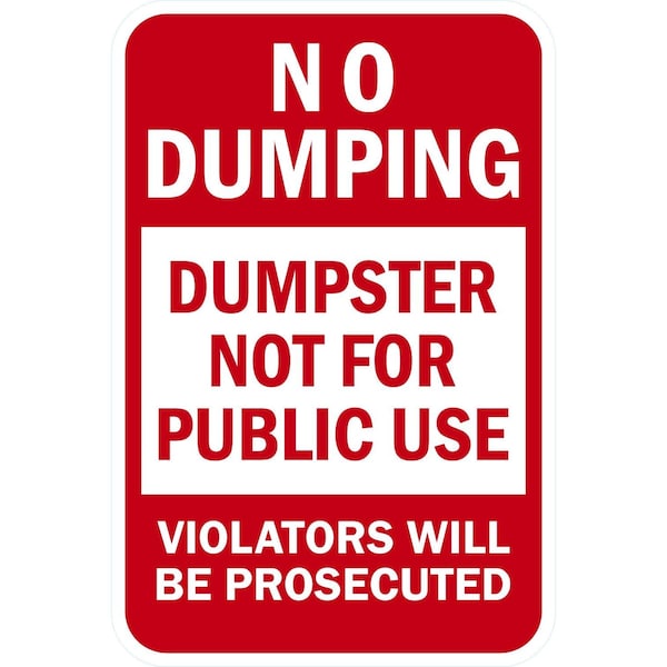 Dumpster Not for Public Use, Violators will be, 12x18, Non-Reflective, White