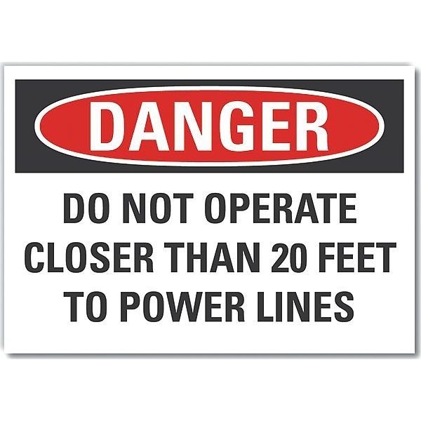 Electrical Hazard Danger Label, Horizontal Rectangle, Number of Printed Sides 1, English, Sign Format Traditional OSHA, Sign Legend Do Not Operate Closer Than 20 Feet To Power Lines, Sign Legend Background Color White, Sign Legend Style Text