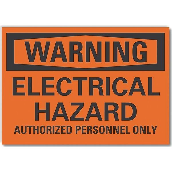 Electrical Hazard Warning Label, Horizontal Rectangle, Number of Printed Sides 1, English, Sign Format Traditional OSHA, Sign Legend Electrical Hazard Authorized Personnel Only, Sign Legend Background Color Orange, Sign Legend Style Text