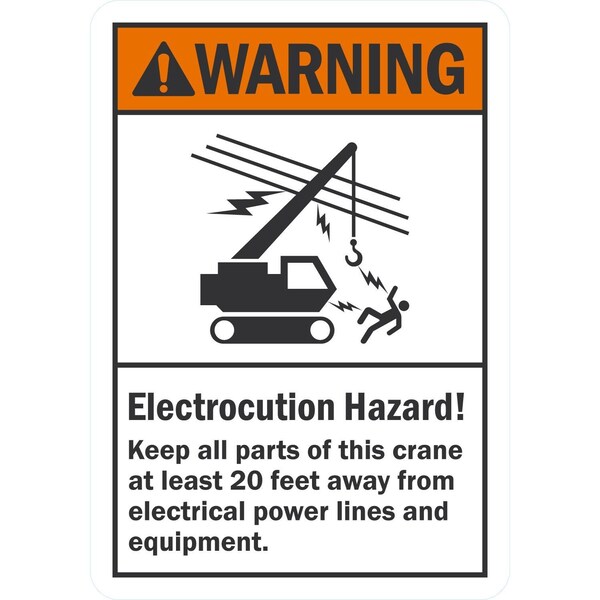 Electrocution Hazard Keep 20 Ft Away, 7x10, Non-Reflective, White