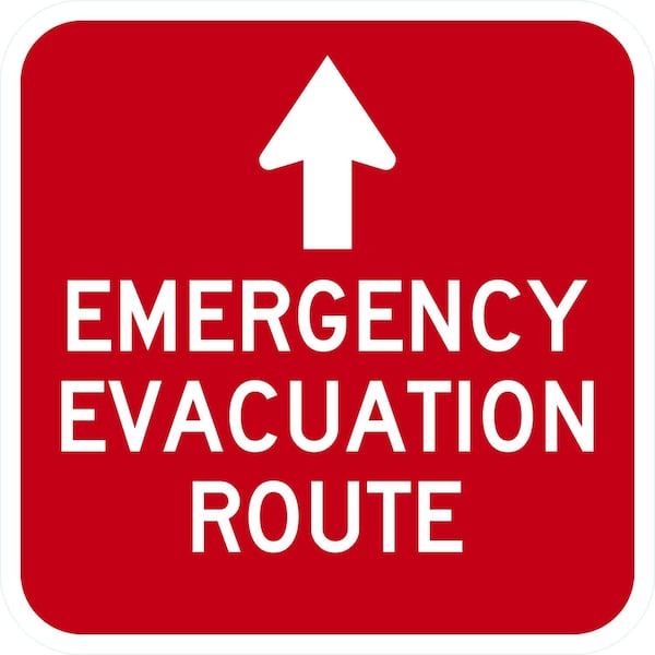 Emergency Evacuation Route With Ahead Arrow, 12x12, Diamond Grade, Red