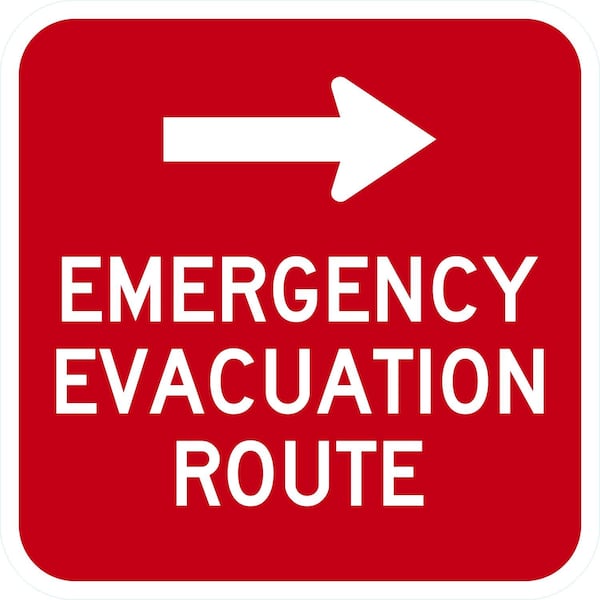 Emergency Evacuation Route With Right Arrow, 12x12, Engineer Grade, Red