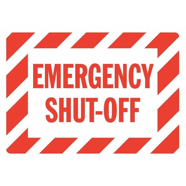 Office and Facility Sign, Vertical Rectangle, Number of Printed Sides 1, English, Sign Format Other Format, Sign Legend Emergency Shut-Off, Sign Legend Background Color White, Sign Legend Style Text