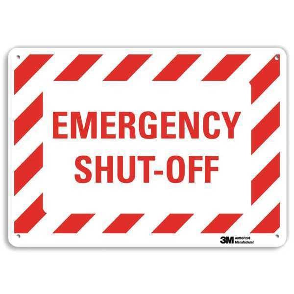 Facility Sign, Vertical Rectangle, Number of Printed Sides 1, English, Sign Legend Emergency Shut-Off, Sign Legend Background Color White, Sign Legend Style Text