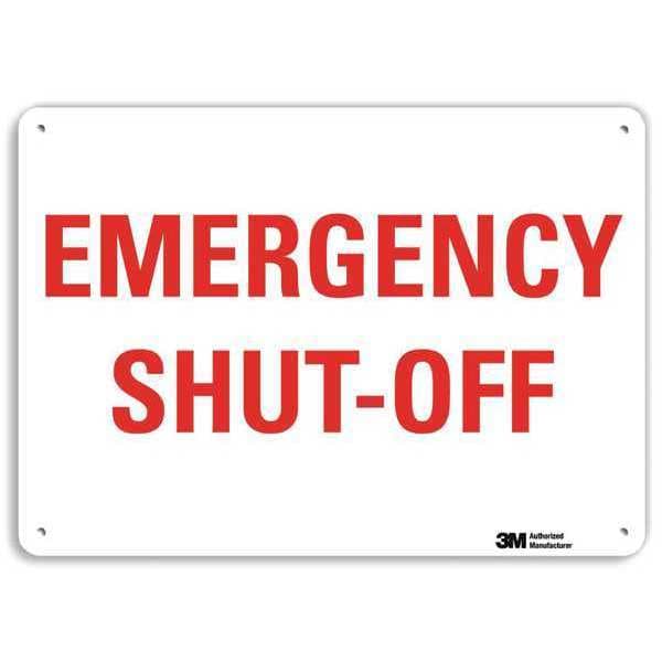 Facility Sign, Vertical Rectangle, Number of Printed Sides 1, English, Sign Legend Emergency Shut-Off, Sign Legend Background Color White, Sign Legend Style Text