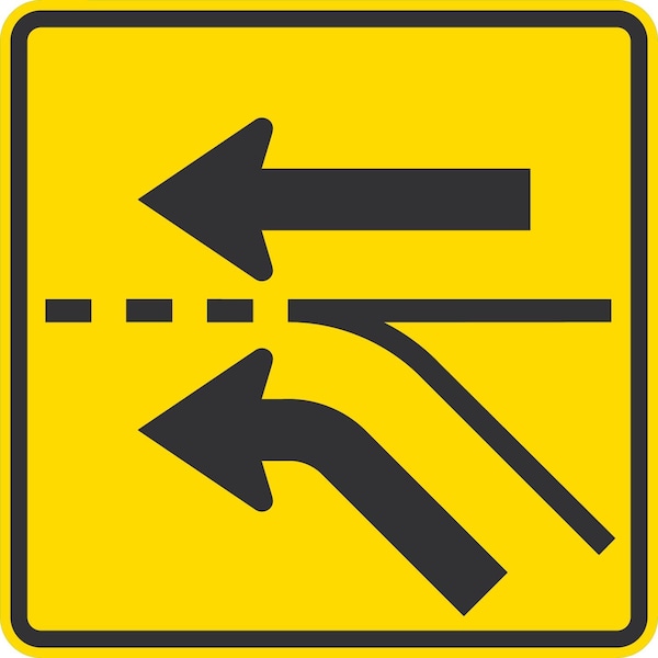 Entering Roadway Added Lane Left, 36x36, Engineer Grade, Yellow