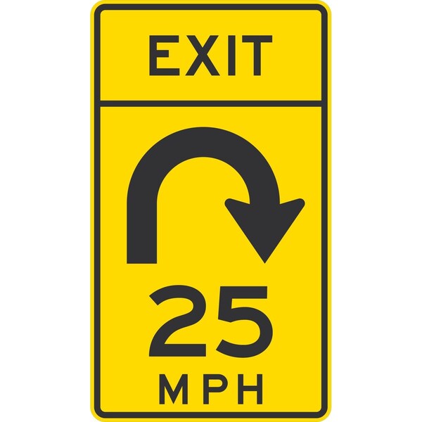 Exit (Right 180ft Loop) 25 MPH, 24x48, High Intensity Prismatic, Yellow
