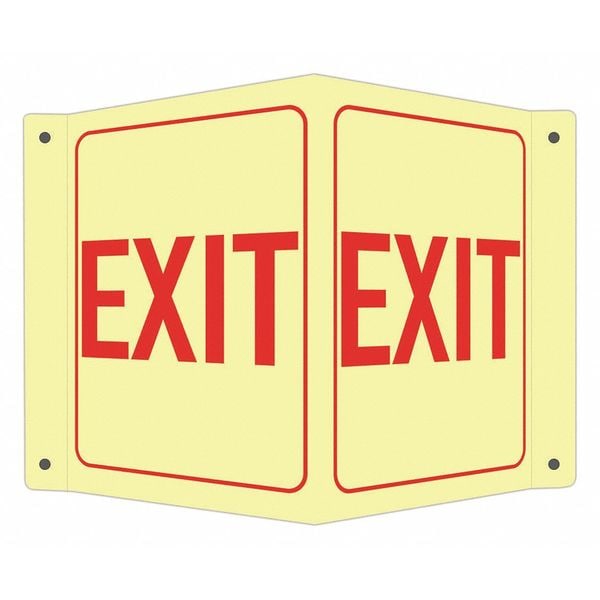 Safety Sign, V-Shape Projection, Number of Printed Sides 1, English, Sign Legend Exit, Sign Legend Background Color White, Sign Legend Style Symbol and Text