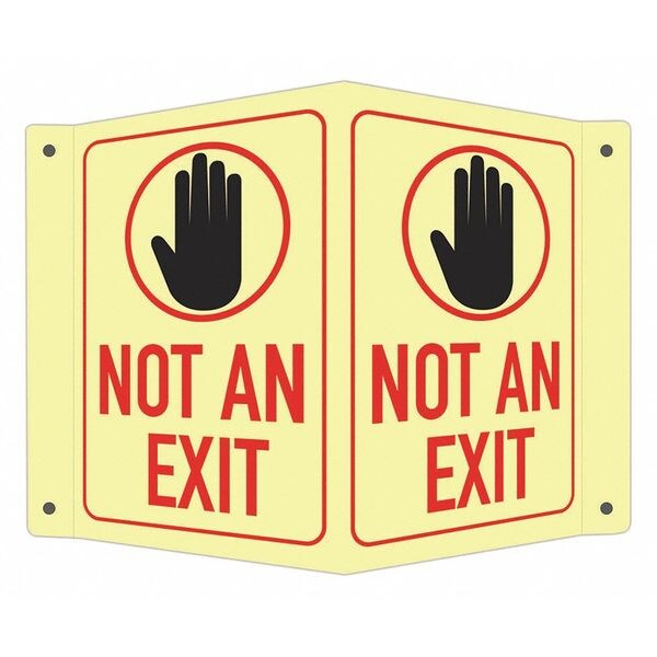Safety Sign, V-Shape Projection, Number of Printed Sides 1, English, Sign Legend Not An Exit, Sign Legend Background Color White, Sign Legend Style Symbol and Text