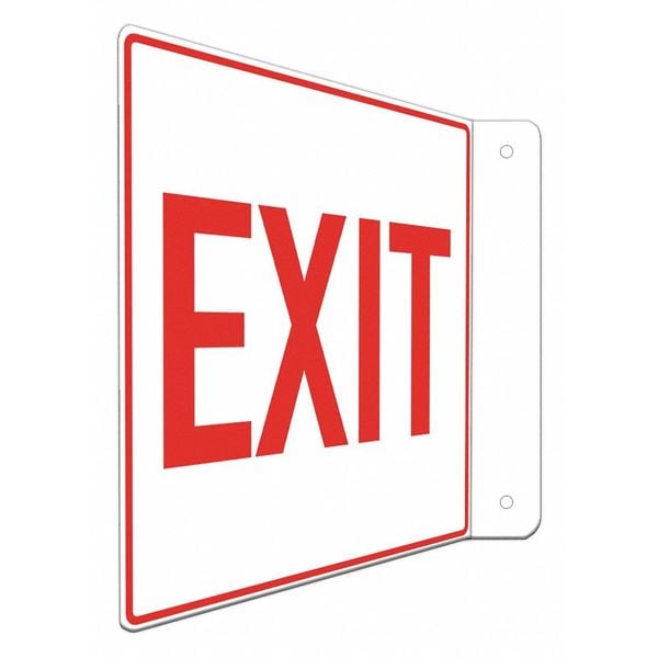 Safety Sign, L-Shape Projection, Number of Printed Sides 2, English, Sign Legend Exit, Sign Legend Background Color White, Sign Legend Style Text