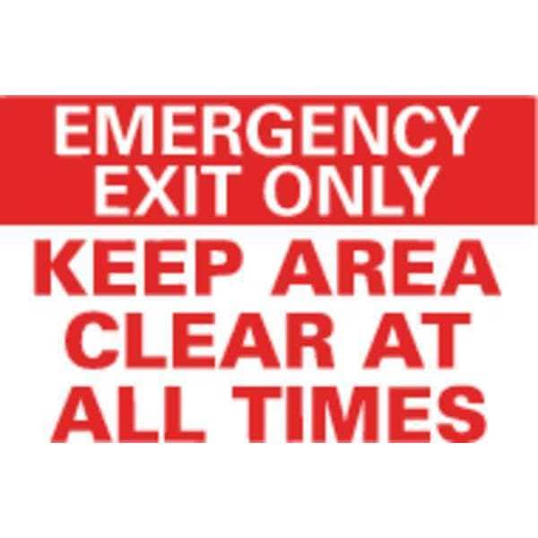Emergency Exit Sign, Horizontal Rectangle, Number of Printed Sides 1, English, Sign Legend Keep Area Clear At All Times, Sign Legend Background Color White, Sign Legend Style Text