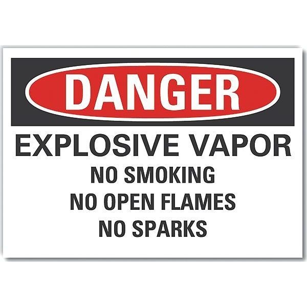 Explosive Materials Danger Label, Horizontal Rectangle, Number of Printed Sides 1, English, Sign Format Traditional OSHA, Sign Legend Explosive Vapor No Smoking No Open Flames No Sparks, Sign Legend Background Color White, Sign Legend Style Text
