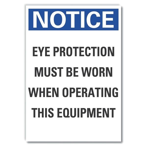 Eye Notice Label, Vertical Rectangle, Number of Printed Sides 1, English, Sign Format ANSI/OSHA Format, Sign Legend Eye Protection Must Be Worn When Operating This Equipment, Sign Legend Background Color White, Sign Legend Style Text