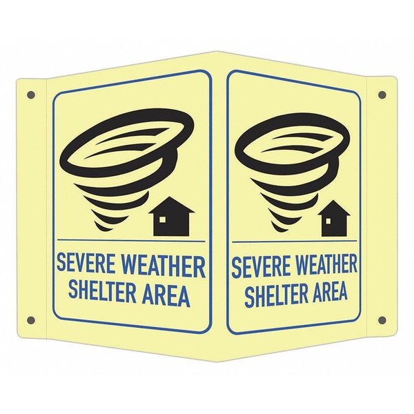 Facility Sign, V-Shape Projection, Number of Printed Sides 1, English, Sign Legend Severe Weather Shelter, Sign Legend Background Color White, Sign Legend Style Symbol and Text