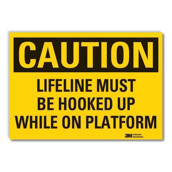 Fall Caution Reflective Label, Horizontal Rectangle, Number of Printed Sides 1, English, Sign Format Traditional OSHA, Sign Legend Lifeline Must Be Hooked Up While On Platform, Sign Legend Background Color Yellow, Sign Legend Style Text