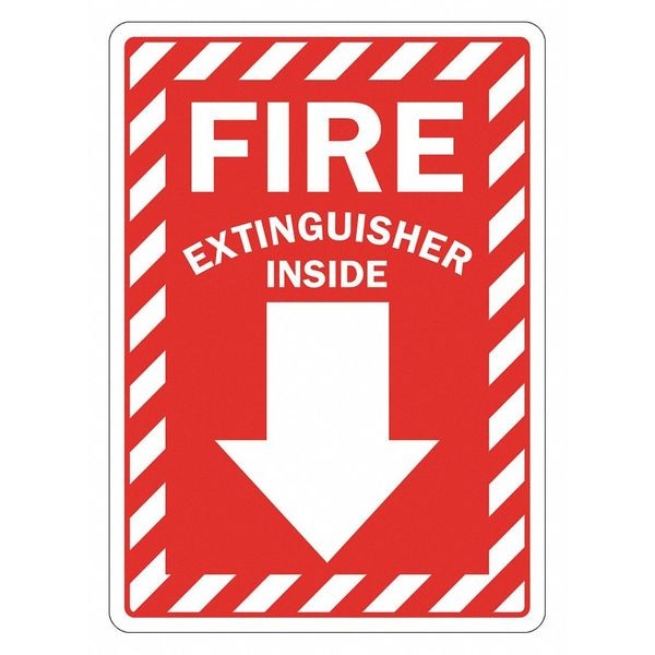 Fire Sign, Vertical Rectangle, Number of Printed Sides 1, English, Sign Legend Fire Extinguisher Inside, Sign Legend Background Color Red, Sign Legend Style Symbol and Text