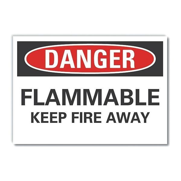 Flammable Material Danger Label, Vertical Rectangle, Number of Printed Sides 1, English, Sign Format Traditional OSHA, Sign Legend Flammable Keep Fire Away, Sign Legend Background Color White, Sign Legend Style Text