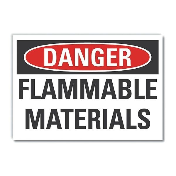 Flammable Material Danger Label, Vertical Rectangle, Number of Printed Sides 1, English, Sign Format Traditional OSHA, Sign Legend Flammable Materials, Sign Legend Background Color White, Sign Legend Style Text