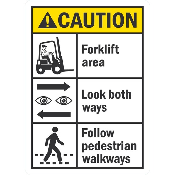 Forklift Area, Look Both Ways, Follow Pedestrian, 10x14, Engineer Grade, White